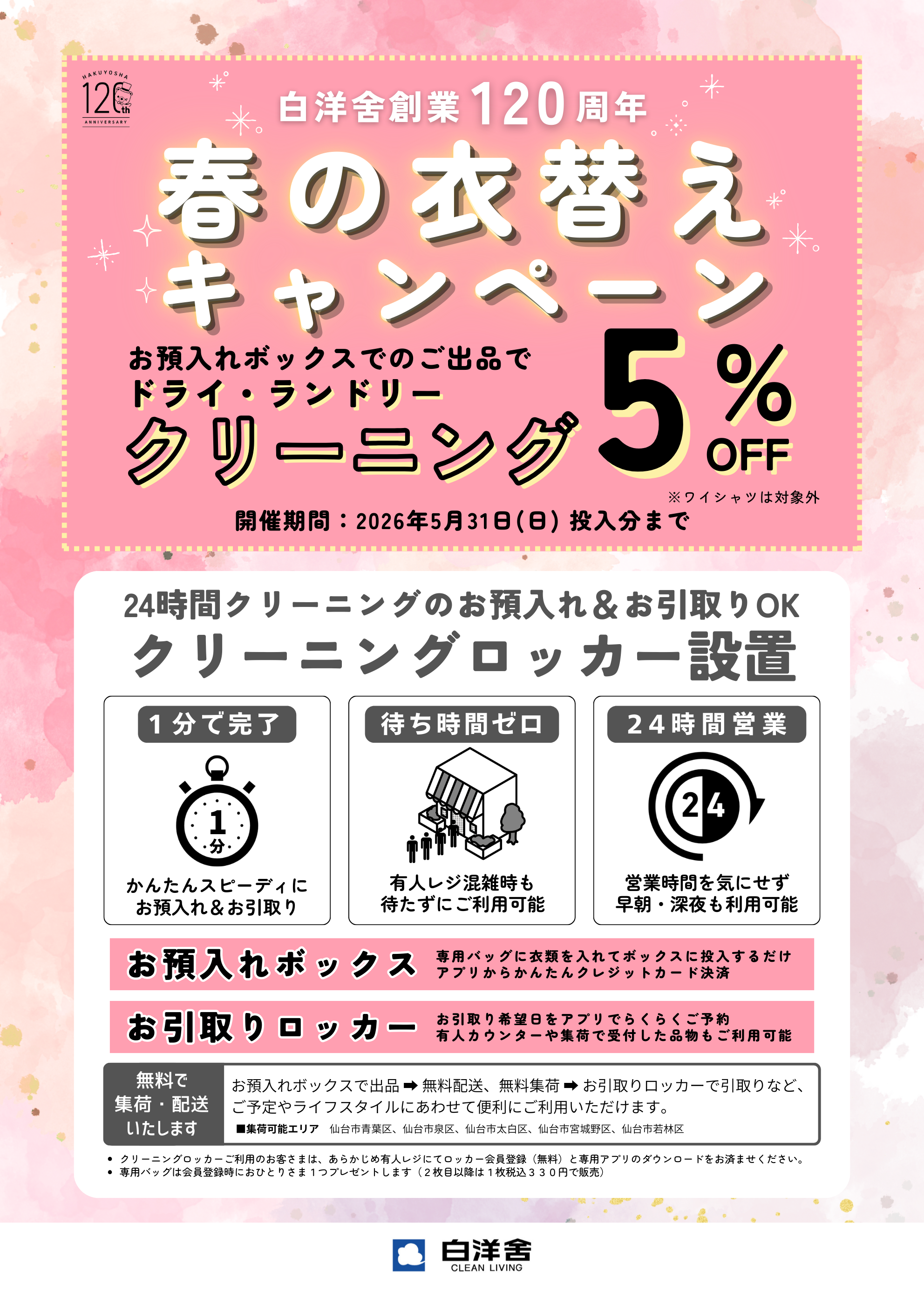※クリーニングロッカーでの受付・引取は24時間可能です。