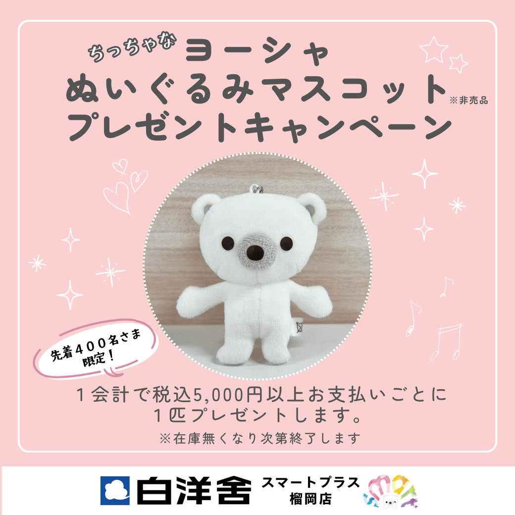 \先着400名様限定/1会計税込5000円以上お支払いのお客さまにヨーシャぬいぐるみマスコットをプレゼント♪皆様のご利用をお待ちしております。※プレゼントの在庫が無くなり次第配布終了いたします。